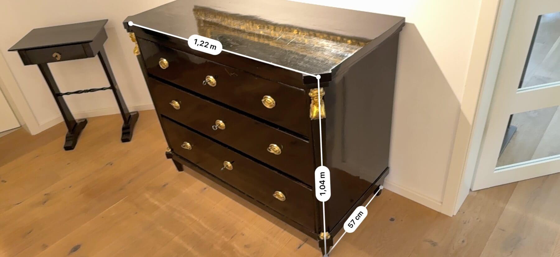 We offer you the opportunity to order a poster of this piece of furniture in the original dimensions so that you can “test it” on site. This allows you to get a realistic picture of the furniture in the desired location, down to the depth of the furniture. The price of 60 euros will be credited if you purchase the furniture at a later date.